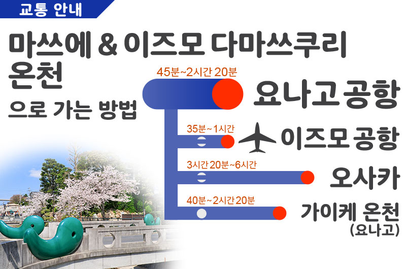 요나고 공항, 이즈모 공항에서 마쓰에 & 이즈모 다마쓰쿠리 지역으로 가시려면, 직통버스를, 오사카에서 오는 경우, JR 특급 또는 고속버스를…