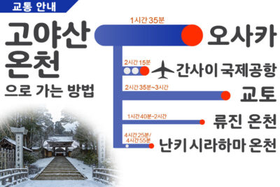 간사이 국제공항, 오사카에서 고야산 지역으로 가시려면, 난카이 철도를, 교토에서 오는 경우, 고속버스(직통)을 이용하실 수 있습니다. 류진 온천...