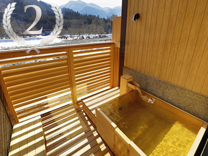 산속의 자연에 둘러싸여 있어 정취가 느껴진다. 노천 대욕장이나 노천온천이 딸린 객실에서도 전망을 즐길 수 있다.